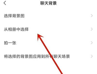 4.进入聊天背景页面后,可以自己拍一张,也可以选择软件自带的背景图,或者点击“从相册中选择”打开手机相册找自己收藏的图片。