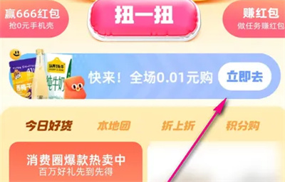4. 在“扭一扭”的下面有一个活动图标,在它的后面点击“立即去”按钮。