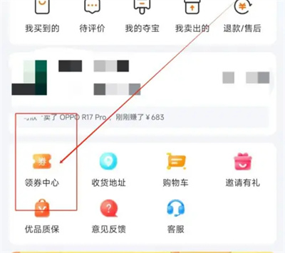 2. 来到个人中心页面后,在下方的功能选项里找到“领券中心”,并在上面点击打开。