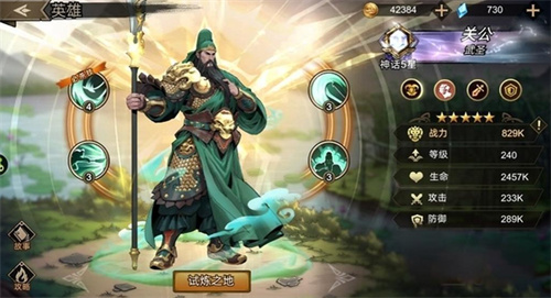 关公是大家很熟悉的角色,在游戏中属于坦克类型的定位,他本身的攻击力较为特殊,可以对敌人造成高额的伤害,同时还能附带吸血的效果,并将已经近身的敌人击飞,为玩家争取到足够多的生存能力。他的大招技能也可以对敌人进行两次伤害,而处于攻击状态时,身上会有无敌的buff并释放威压效果,让敌人无法移动。