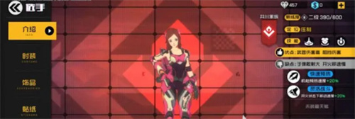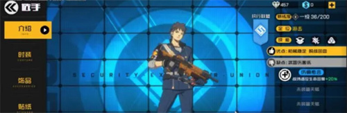 这个角色在众多角色中处于游走的定位,武器的稳定性相较于其他的角色来说是比较强的,能够为玩家带来非常稳定的输出,同时它的射速非常快,若是放在手速非常快的玩家手中,能够发挥意想不到的伤害效果。可以使用这个角色先手打发射,后续以高伤害输出为主。