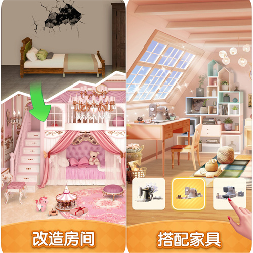 《装扮小屋》是一款十分治愈的模拟经营游戏。玩家在游戏中将扮演一名设计师,帮助破产的Caroline按照剧情的提示装修房子。在装修过程中,还能发挥自己高超的眼力,完成高燃的三消关卡。一步步升级从而装修更多更大的空间,成为一名优秀的设计师。