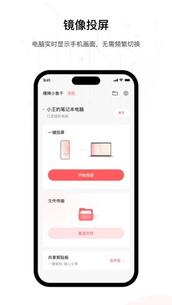 4. 镜像投屏:支持手机屏幕实时投射到电脑上,方便进行演示、分享或者展示,提升工作和娱乐效率。