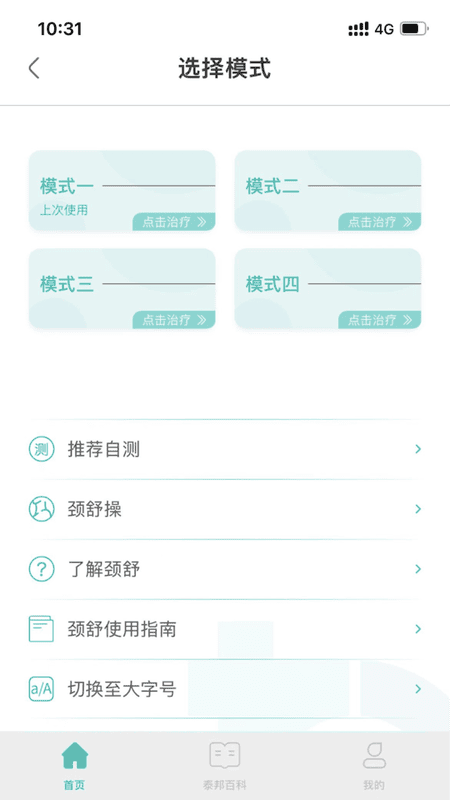 四大治疗模块:颈椎治疗、腰椎治疗、关节治疗,乳舒治疗,一键蓝牙连接,及时启动治疗,方便快捷;