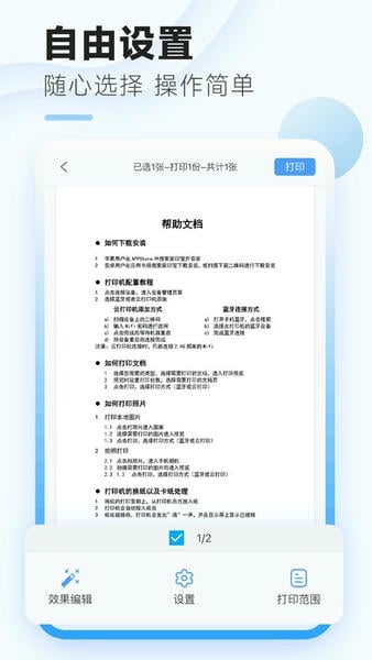 1.可以将普通文档(例如word,pdf和图片)无线打印到所有家用和商用打印设备,例如HP打印机,爱普生打印机,佳能打印机,Brother打印机,联想打印机等