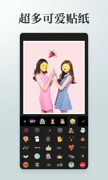 海量贴纸:提供百种以上趣味贴纸、表情和相框,让您的照片与众不同。