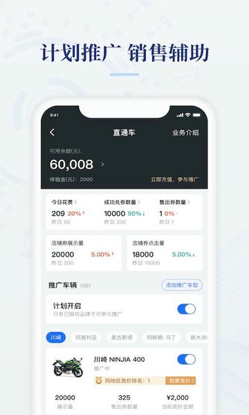 摩托范商家版是专为摩托经销商打造的服务平台,从这里可以获取到海量的客户,提升门店收益。支持创建主营平台,经营更有针对性。线上营销助手,店铺经营数据一目了然,优劣势调整,经营更轻松。