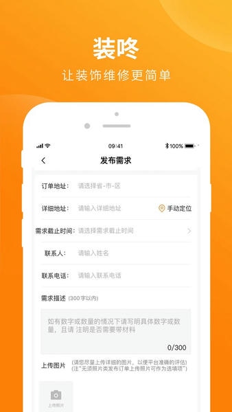 装咚专门为有装修需要的用户提供装修服务,自己家里需要翻新或者新房装修,可以直接手机在线发布订单,装修师傅可以通过这个平台查看详细的订单信息,然后就会有装修公司联系你,为你制定一些装修方案,然后你只需要自己选择合适的,装修公司就会完成相应的工作。装修订单情况可以实时的查看,只要完成就可以获得收益。