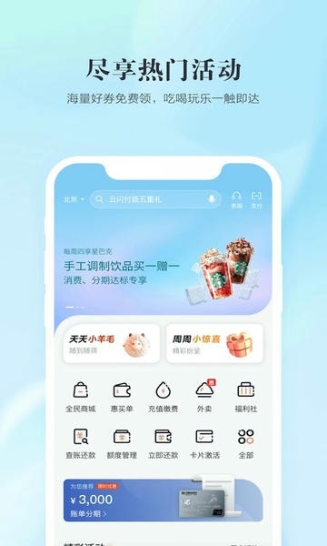【多重惊喜活动、百万奖金好礼 更实惠】6月推出“616 惊喜狂欢季”、“618 聚惠民生”、“天天翻翻乐”、“诗词答题全民挑战”等多重惊喜活动。不仅有百万奖金,更有万元苹果手机、还款金、消费金、品牌商品专享优惠券等超多好礼发放。