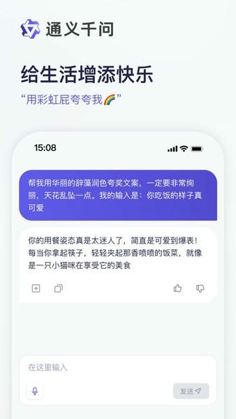 通义千问app是款智能AI聊天应用,为用户提供即时的问题解答和个性化咨询服务。通过AI技术,它能理解用户提出的问题,并快速给出准确和详细的回答。无论是日常生活、学习、工作还是娱乐方面的问题,用户都可以在这个应用中得到帮助。同时,该应用还可以进行智能推荐,根据用户的需求和兴趣提供个性化的内容和服务。让用户能够在与AI的聊天中获得更多的乐趣和便利。