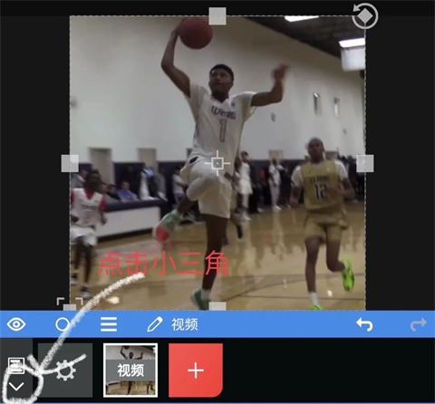 5、选择好素材过后,点击左下角小三角;