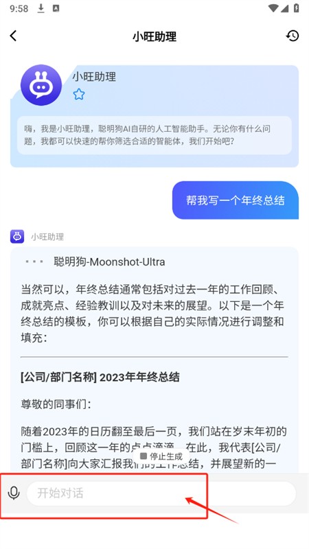4、点击小旺助理,输入问题内容,软件会快速生成答案