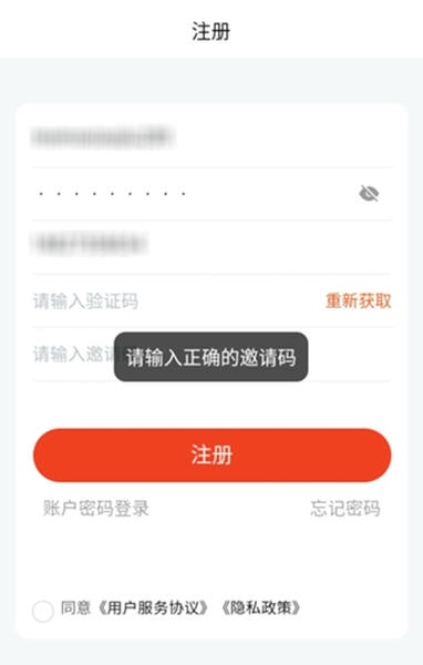 在当前页面填写账号和密码以及手机号码,获取验证码之前需要填写邀请码,没有邀请码不能注册哦。