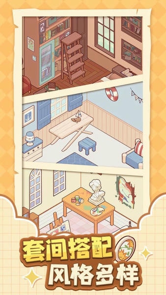 温柔手账风,随手就是一页日记:游戏整体采用软萌手账画风,翻页式界面、贴纸感UI,让你仿佛在翻看自己的生活本子。每一次装修、换装、合影都会被记录下来,变成专属的温暖回忆。
