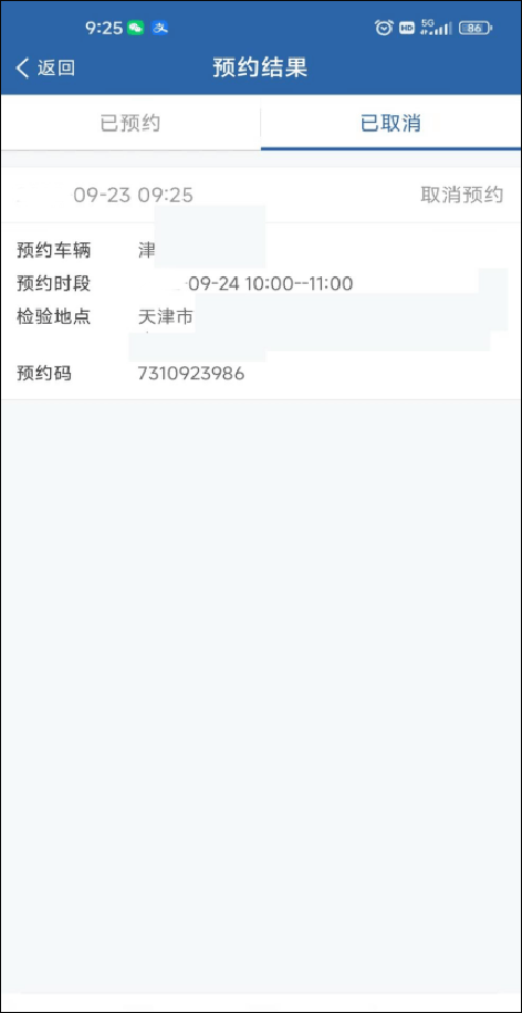 第一步:在预约结果查询界面中,点击【取消预约】按钮。