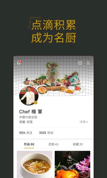 让厨师得以专业地呈现作品、有序地管理成果,形成专属于自己的个人品牌。