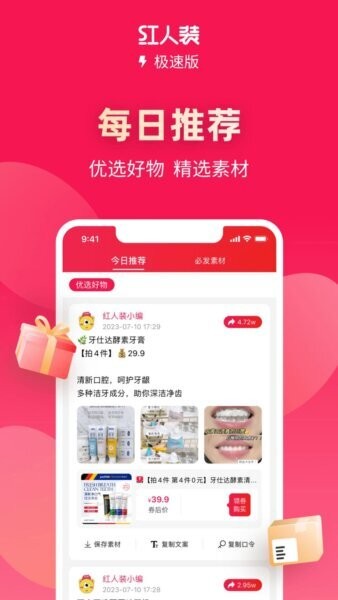 红人装极速版最新版是一款主打省钱+精选的购物app,围绕新人福利、海量优惠券、每日推荐等核心场景,把你想买的日常好物、爆款单品与可用优惠快速匹配,做到一键领券、下单立省。应用内提供新人0元免单专区、品牌券/店铺券/平台券聚合、精选素材与推荐清单等模块,帮助你更高效地发现高性价比商品;同时支持推广奖励玩法,让省钱之外的分享也更有动力。无论你是精打细算的日常采购党,还是爱逛好物的种草用户,都能在极速版里用更短时间完成找券―比价―下单的闭环。