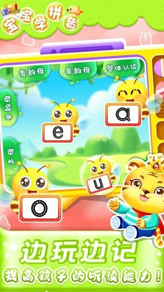儿童学汉语拼音app能够让2-6岁的小宝宝们更快速的学习拼音,包括了认读以及韵母的认识和练习等等,以游戏的方式加深孩子们的记忆力,欢迎大家体验。