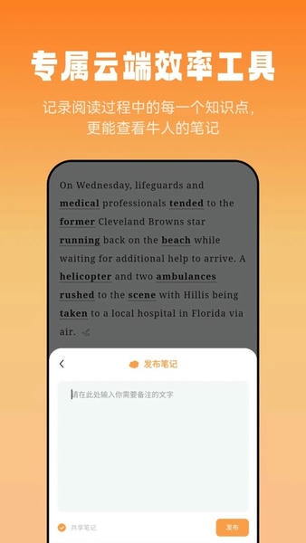 -创新的点词搜索功能,对文章中的单词即指即译。