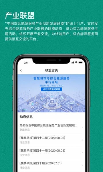 “中国综合能源服务产业创新发展联盟”的线上门户,实时发布综合能源服务产业联盟的联盟动态,举办综合能源服务主题活动,组织开展产业交流,为终端用户、综合能源服务商提供相互交流的平台。