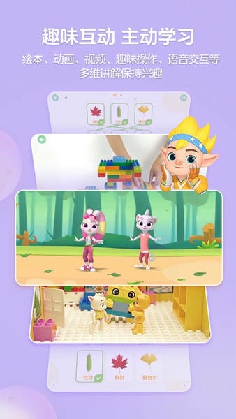 2.趣味互动主动学习--通过绘本、动画、视频、趣味操作、语音交互等丰富的学习形式,保持孩子的学习热情和学习乐趣