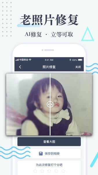 老照片修复软件手机版免费是非常专业的照片美化工具类软件,它可以对大家手上很多年前的老旧照片进行智能修复,使其拥有更好的清晰度。同时它还可对轻度损坏的照片进行还原,让用户找回缺失俄照片记忆。