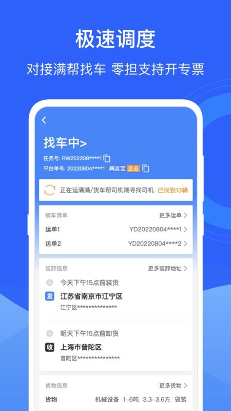 1、在线接单,一键接单更快捷,公司派单,查看各种运输信息;