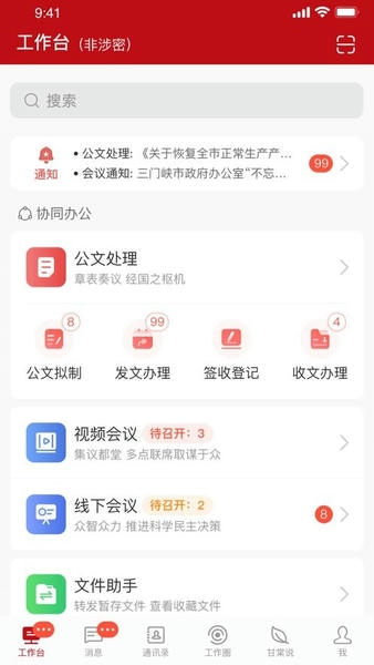 -上线了公文管理、通知公告、工作任务、通讯录、即时通讯、手写签批、安全认证等功能。