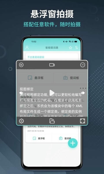 提词面板支持悬浮手机桌面,可以和任意相机、视频、直播、会议、网校软件搭配使用提词功能!