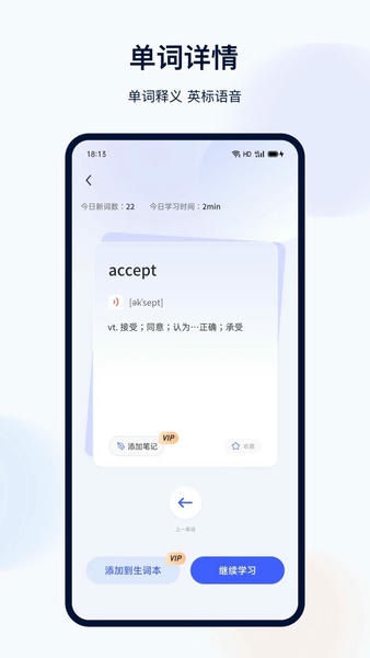 1.词汇学习:提供多种词汇学习方法,如单词记忆卡片、词汇测试、词汇游戏等。帮助用户快速扩大词汇量,掌握单词的发音、拼写、词义和用法。