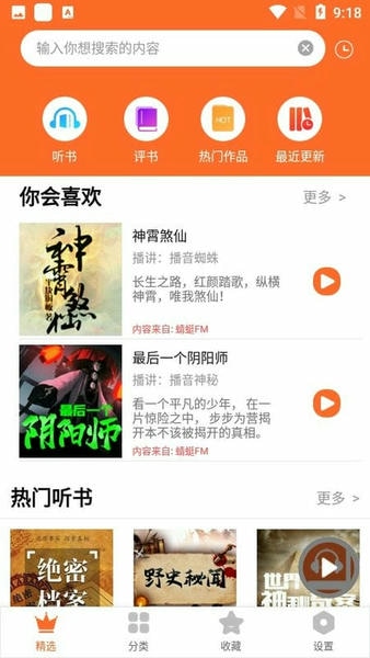 在手机上可以移动听书的手机软件,是在手机上可以为你每天提供你喜欢的小说作品的手机软件,解放你的双手,海量小说等你来听,大大提升了便利性,各种好书不断上架中。