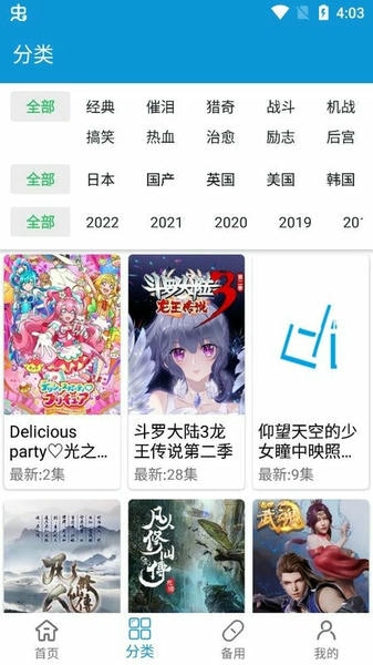 -分类功能:根据类型、地区、风格、年份等直接搜索到属于你的动漫。