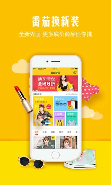 国民App番茄炒蛋手机购物聚划算!这是蘑菇街旗下一款专注折扣特卖的App,小编精挑细选海量低价商品,随手8.8元!新增清仓专区底价挥泪甩卖,限时秒杀1元开抢,超值8块8包邮实惠到你哭,品牌特惠1折正品放心购!