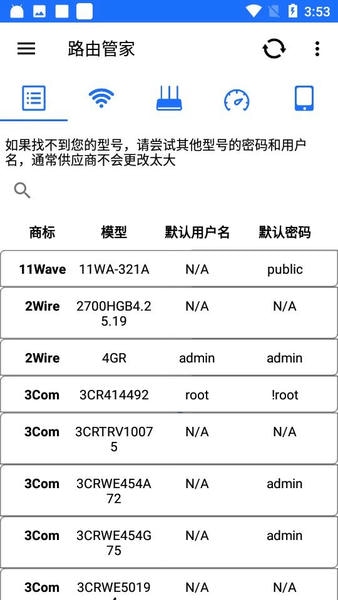 3.路由器默认密码:如果您不知道WiFi路由器设置页面的默认密码,则该应用程序包含任何调制解调器路由器品牌和型号的完整数据库,您将搜索路由器型号并登录路由器设置页面,是您的wifi管家,wifi密码查看器