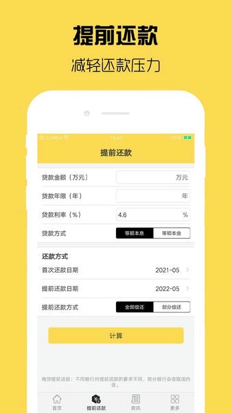 2024买房必备!专业的房贷计算器!实时更新房贷利率,计算超准确!无论公积金贷款、商业贷款、还是组合贷;不管是等额本息还是等额本金,一个工具,全部搞定!新增提前还款、房贷利率表、房贷知识、银行电话、房产资讯等买房必备功能。