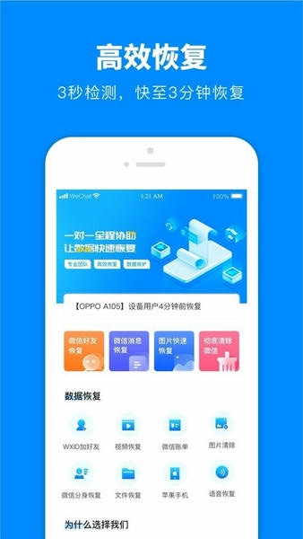 微数据恢复宝是一个为手机打造的数据找回恢复软件,能够实现快速的找回手机删除的数据,适用于各种软件找回,全程自动安全,保护用户的隐私问题.