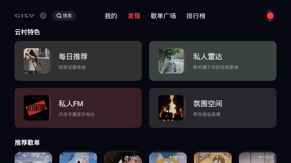 网易云音乐tv版是网易云官方专为智能电视打造的版本,设计简洁,功能全面,移动端有的功能这里都有。排行榜、个性化推荐、歌曲分类等一应俱全,轻松找到想听的歌曲,快来试试吧。