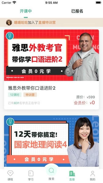 中外教直播课,每周更新。搞定听、说、读、写所有薄弱环节;