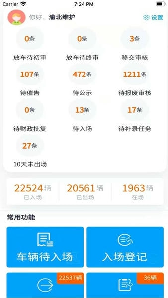 为各停车场和委拖停车保管单位管理车辆应用。为委托单位的各部门、停车场管理部门实现查看各部门单位扣车情况、停车场入场出场登记,管理放车,查看超时未领取车辆数据等功能。
