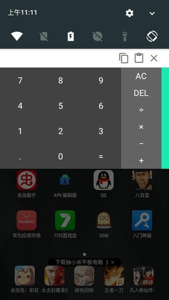 3、开启通知后,下拉状态栏就可以看到计算器了.