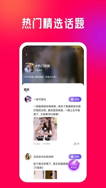 3.精选了大量优秀的作品,让用户可以欣赏到高水平的短剧。