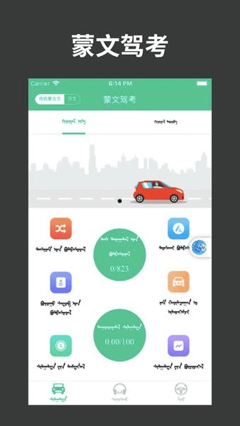蒙文驾考app主要为方便广大农牧民和学生顺利通过蒙文驾驶员理论考试,是一款互联网学习平台。蒙汉双语版本,可蒙文汉文双语切换题库和语言。