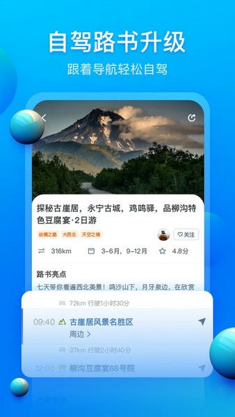 阿哈路书是一款一站式自驾游服务平台,为喜欢自驾游的用户提供完善的自驾游服务,包含地图线路规划,景点推荐及解读等等功能,致力于给你最好的自驾游体验,快来试试!