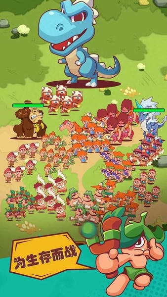 采用了经典的模拟经营玩法,同时又在其中,融入了卡牌元素与放置元素,在游戏中,玩家可以招募勇士,驯养远古生物,围猎巨兽,抵御外敌入侵,带领部落不断壮大。