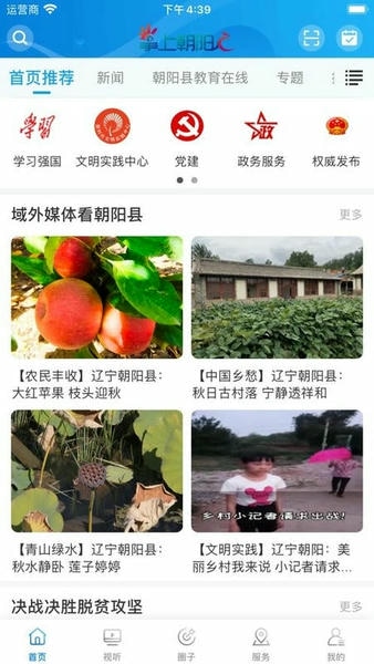 掌上朝阳是一款为朝阳地区打造的民众生活资讯新闻媒体平台,专门为大家推送当地的最新新闻资讯,让大家及时了解当地的所有事情,快来试试吧.