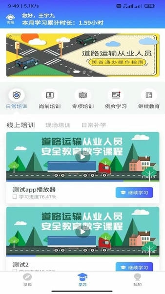 交通安培学员平台,通过“认证识别系统”完成交通安全课程学习,不受时间、地点限制,解决“工学矛盾”。