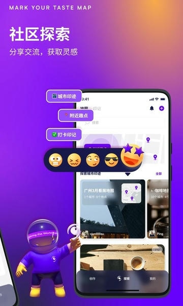 不再是单一的地图标记,可以用各种好玩的 emoji、自定义地点标签和可视化点评标记地点。