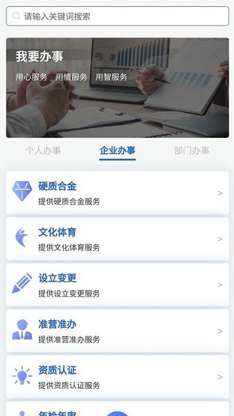 我的政务,实现“一件事一次办”,在办事板块中按高频办事项以及部门查询各类行政审批和公共服务事项的办事指南。