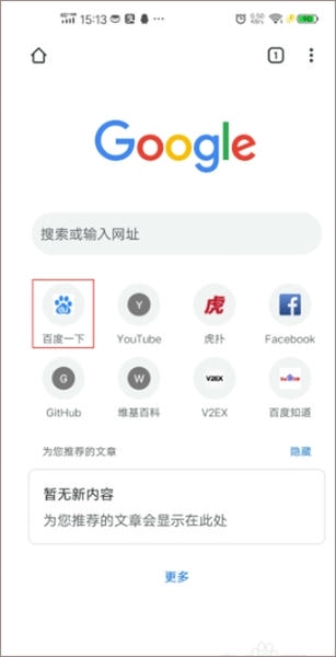1、我们在手机上打开谷歌浏览器安卓版,在主界面中找到“百度一下”图标,点击打开它;