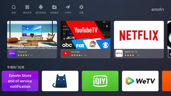 Emotn Store应用商店又叫艾蒙顿应用市场,它是一款专门为电视设备打造的应用商店app,可以让你的智能电视变得更加具有可玩性,能够通过emotn store安装超多tv版的软件,兼容性强操作简单,欢迎大家下载.